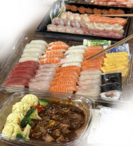 寿司ファミリー盛48貫、特選寿司32貫、バラエティロール寿司、