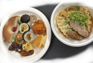 豚骨ラーメン(一蘭ラーメンプレミアム二種セット、広東風チャーシュー、bibigo王マンドゥ)、